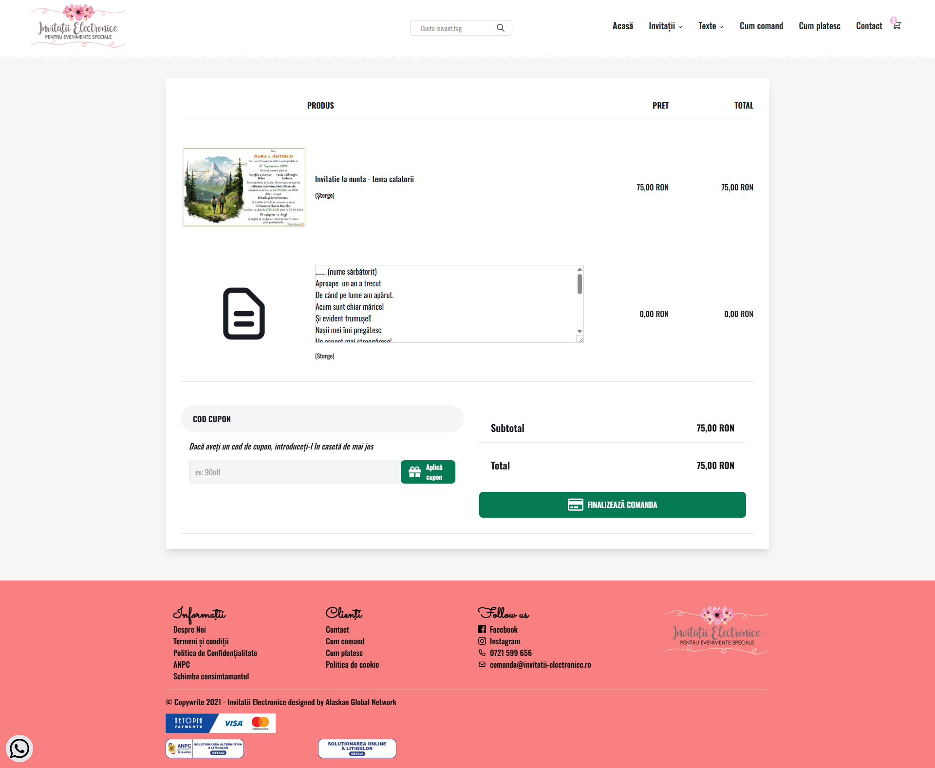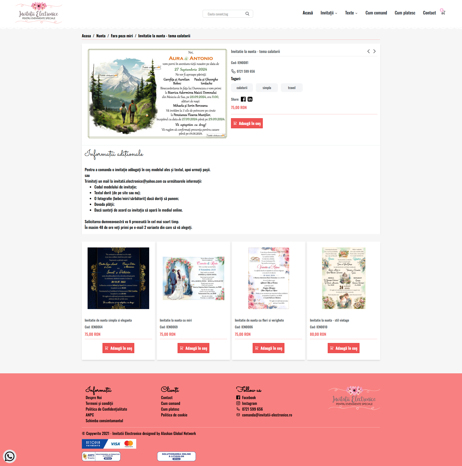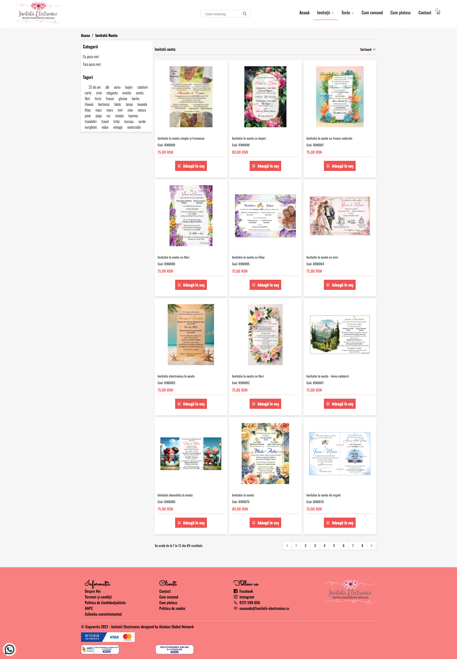 Prezentare de invitatiilor electronice cu posibilitatea de achizitionare online.