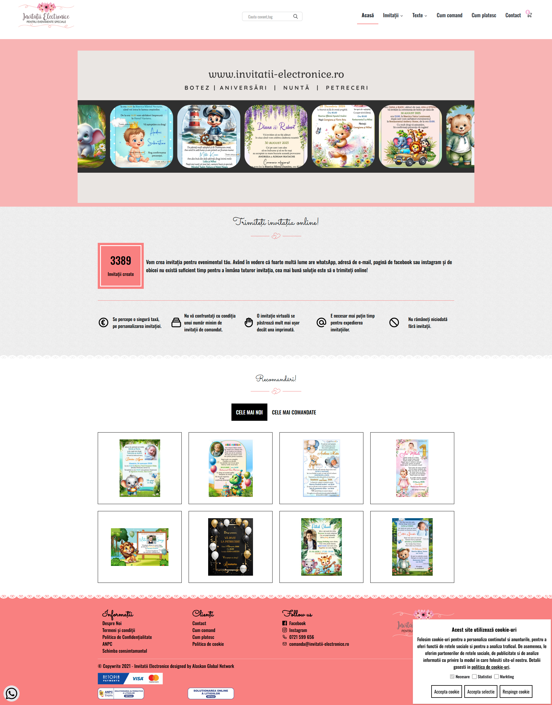 Site de prezentare a invitatiilor electronice cu posibilitatea de achizitionare online. Catalog de invitatii si texte pentru diferite ocazii aniversare realizate la comanda.